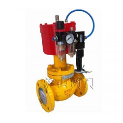 4、雙作用式工作原理:當控制器按事先編好的程序對某個電磁換向閥輸出一個電信號,該電磁換向閥動作,使帶壓儀表氣源通過電磁換向閥的切換進入氣動執(zhí)行機構的氣缸下腔推動活塞向上運動,活塞帶動閥桿,閥桿提動閥芯使閥門開啟,切斷換向閥電信號,使活塞反向運動使閥門關閉,這種閥門配置稱為常閉式。反之,要做成常開式只需在電磁換向閥與氣動執(zhí)行機構的連接方式變換一下就能實現。