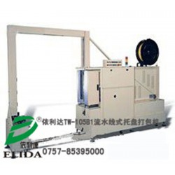 依利達TW-105B1流水線式托盤穿劍式打包機(又稱為廣州在線式全自動棧板捆扎機/深圳卡板自動輸送捆包機/東莞托盤在線式捆扎打帶機/惠州棧板無人化打包帶包裝機械/佛山全自動在線棧板捆包機/珠海側(cè)邊冰箱捆扎機):針對棧板捆包而設(shè)計,實現(xiàn)無人化棧板自動打包;