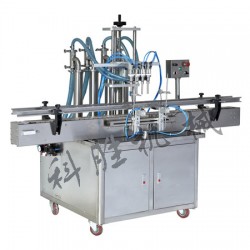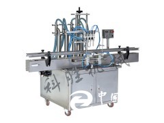 該機(jī)有四個(gè)灌裝頭,由四個(gè)氣缸驅(qū)動、灌裝物料更加快速jing